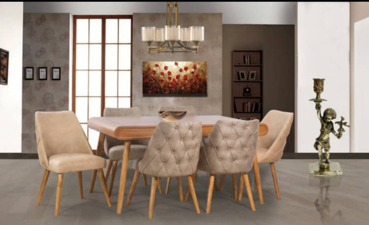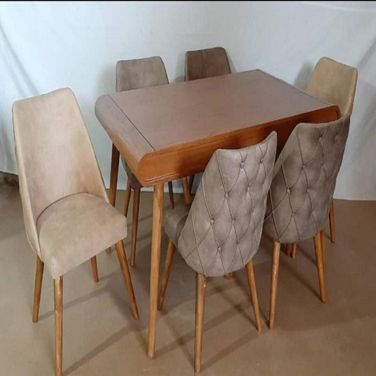 جنس پارچه مسکو درجه یک رنگ انتخابی مطابق سلیقه مشتریان گرامی جنس چوب از نوع راش باکیفیت رنگ انتخابی پایه میز و و صندلی مطابق سلیقه مشتریان گرامی تا 2 سال ضمانت رنگ ئریدگی و ترک برداشتن