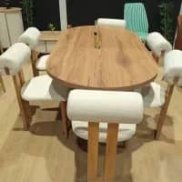 جنس پارچه مسکو درجه یک رنگ انتخابی مطابق سلیقه مشتریان گرامی جنس چوب از نوع راش باکیفیت رنگ انتخابی پایه میز و و صندلی مطابق سلیقه مشتریان گرامی تا 2 سال ضمانت رنگ پریدگی و ترک برداشتن